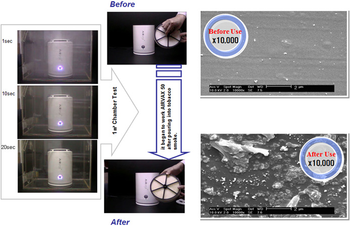 Electric Collector Type or aromatic mixing type cause headache, vomiting, drowsiness and atopy as they occur secondary Hazardous Substances like ozone , Carbon Monoxide(CO), aromatic annex, ionized dust and fine dust but e-FILM FILTER has a totally different system which never cause? secondary Hazardous Substances at all.