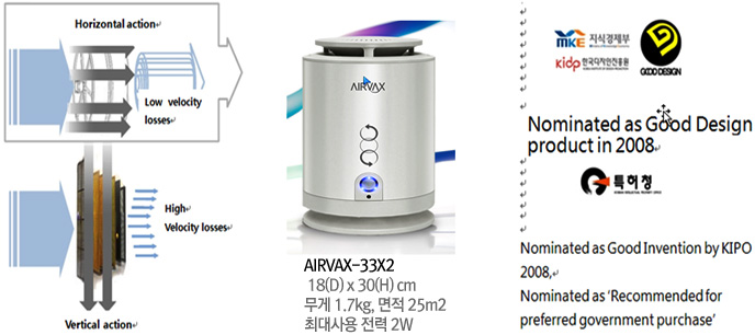 에어벡스는 세계 최초의 SEFF (정전기 필름 필터)방식 사용하여