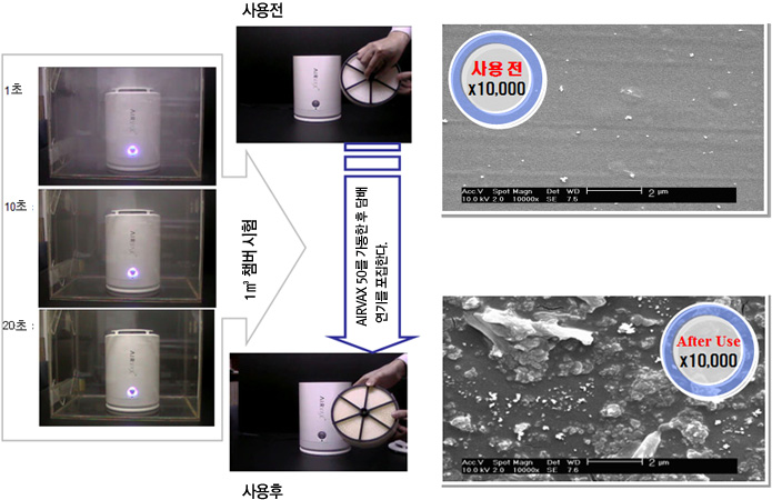 HEPA 필터는 극 미세먼지의 포집이 어렵고, 음이온방식은 오존(O3)과 낙진 발생…
